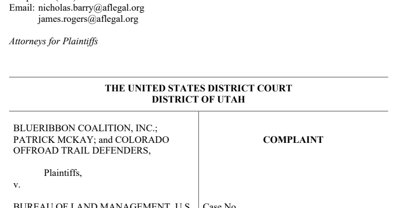 The coalition, which consists of the BlueRibbon Coalition, Colorado Off-Road Trail Defenders, and an individual named Patrick McKay, is asking the federal court to issue a preliminary injunction that will allow the trails to remain open while the litigation is ongoing.